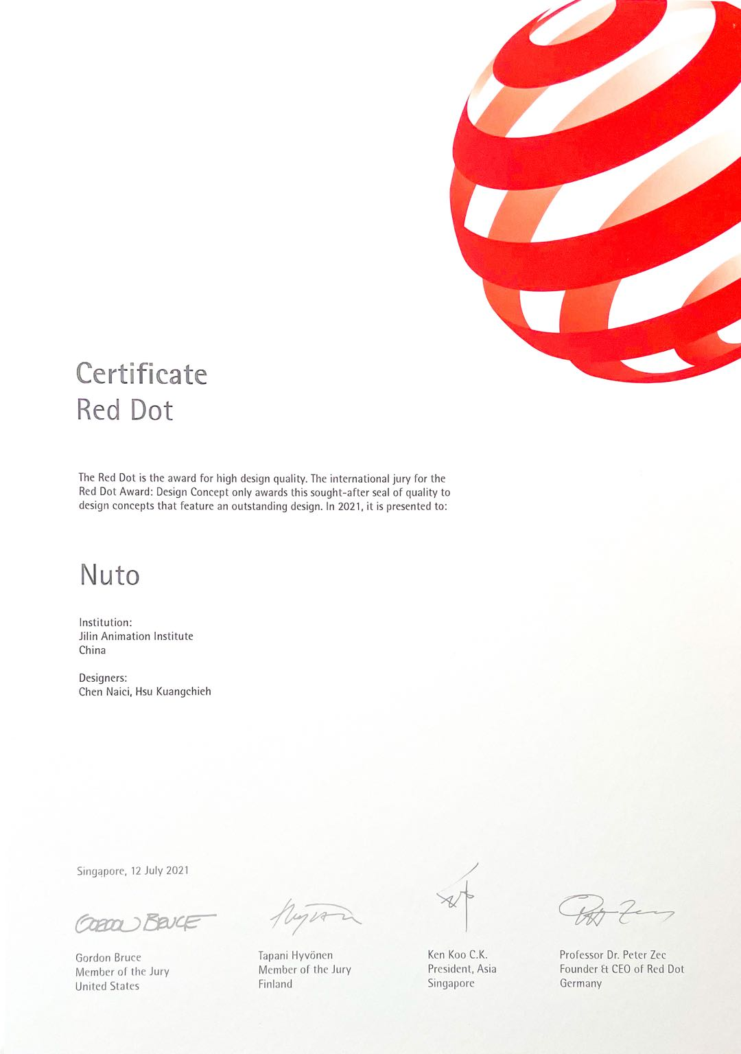此次,许光杰、陈乃慈两位老师的设计作品斩获红点概念设计大奖为本校第二次获得世界四大设计竞赛,并在专业组别获得高级荣誉。如此,不仅大大提高了吉林动画学院在世界设计大赛中的知名度,也进一步增强了“学研产一体化”办学特色,持续面向着国际化办学发展目标前进。