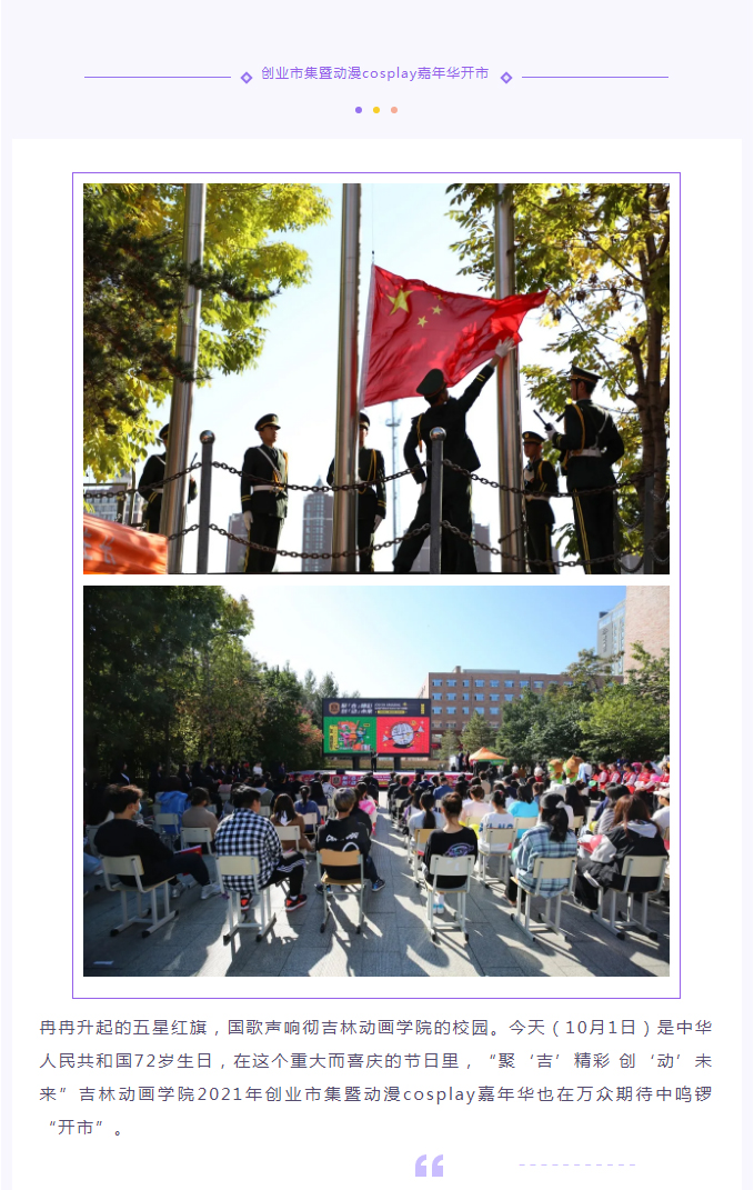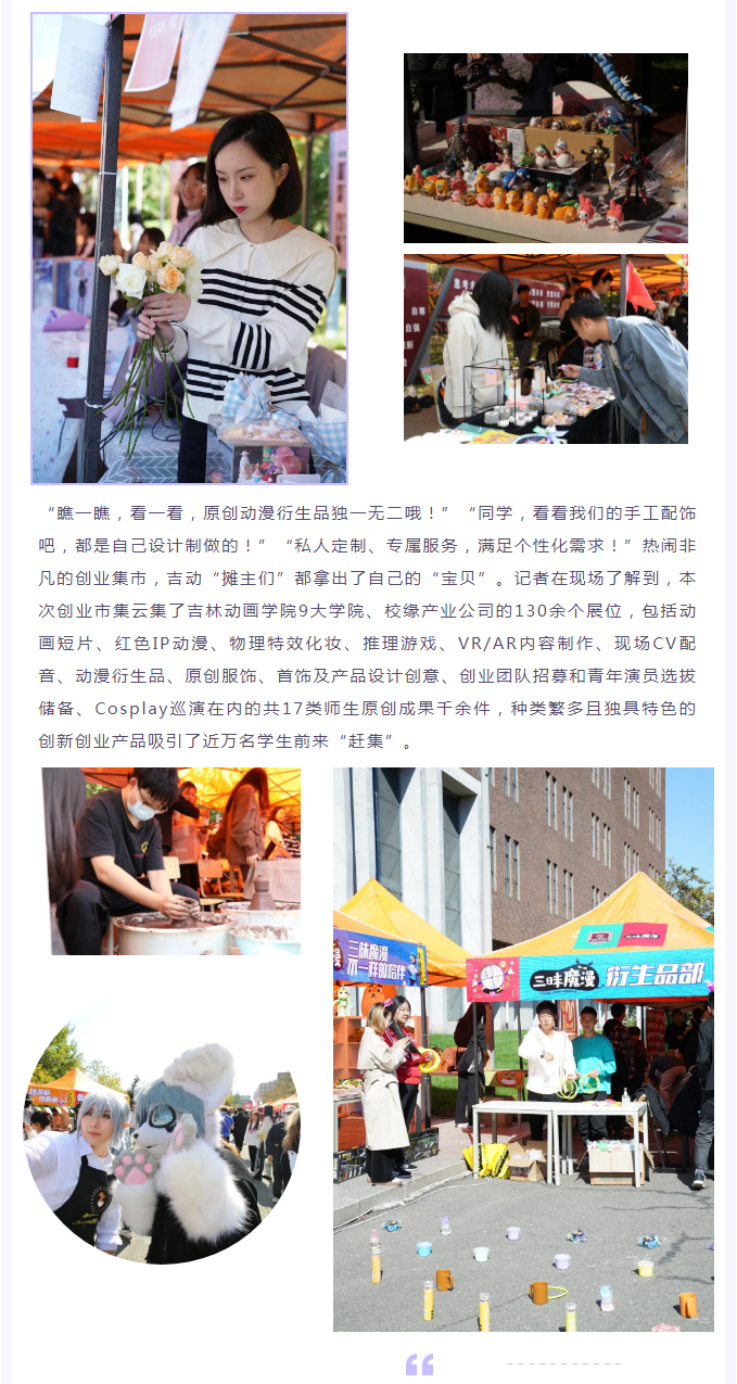 【JAI·创】吉林动画学院校园热闹非凡,创业市集暨动漫cosplay嘉年华开市! 发布时间:2021年10月01日 18:54:07 浏览:次 >>>> 本期编辑 | 戴月 文字来源 | 于千傲 图片来源 | 张术 大学生融媒体中心 王亦涵 鲁博文 常智超 崔凌云 郑晨 刘海涛 刘菊 权艺婷 王佳蕾 李大洲 李倩 彭溢然 敖然 郭效台 刘星宇 视频来源 | 张鹤 王紫平 大学生融媒体中心 王亦涵 鲁博文 董泳欣 付彦德 刘佳瑞 黄育 于桦育 彭立庭 航拍来源 | 大学生融媒体中心 贾智超