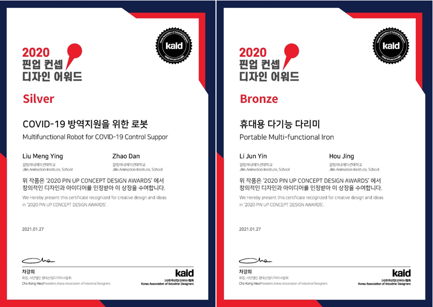 吉林动画学院产品造型学院学生在韩国举办的2020PIN UP国际概念设计大赛中勇夺银奖和铜奖。