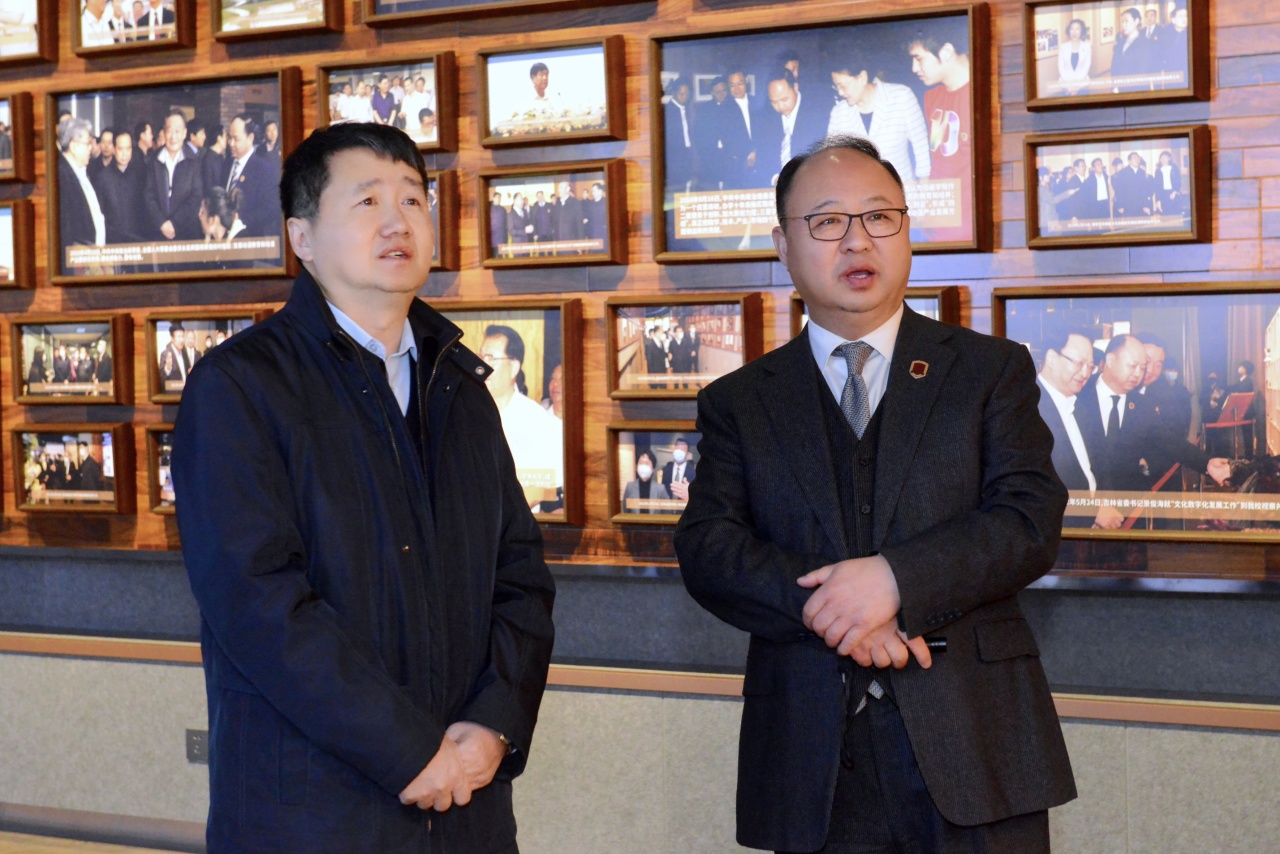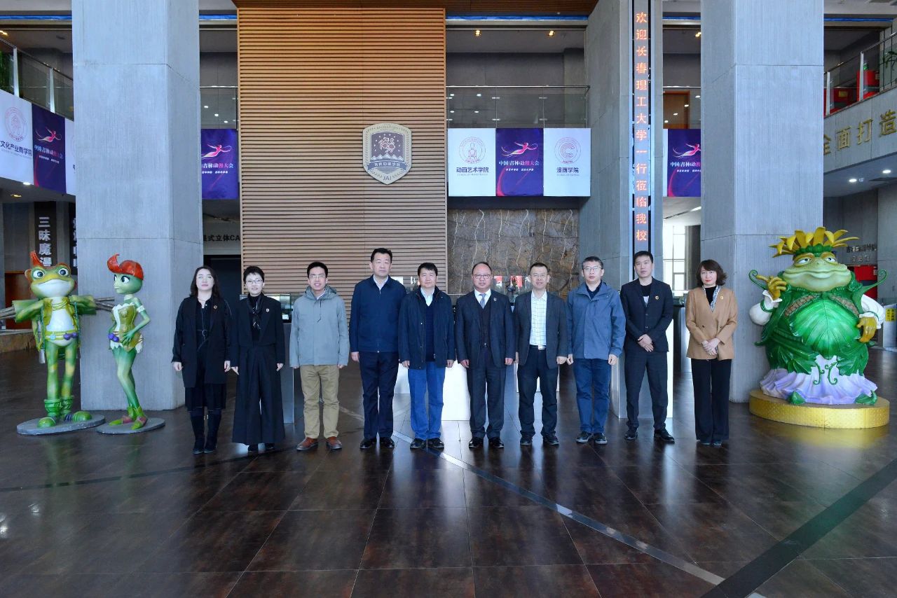 长春理工大学计算机科学技术学院院长蒋振刚,吉林动画学院党委书记、督导专员岳武,长春理工大学计算机科学技术学院副院长陈纯毅、张昕,吉林动画学院校领导彭巍、盖世蕊陪同参观、座谈。