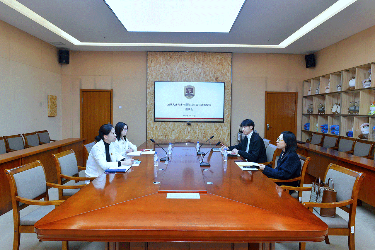 与加拿大多伦多电影学院的座谈从双方建立校际合作关系、项目联合制作、大师课等方面展开,并达成了共识,携手为两校师生开拓更丰富的交流学习平台。杨芷女士表示加拿大多伦多电影学院“注重实践”的特色与我校“学研产一体化”的办学特色不谋而合,同时对我校“大一大二选专业,大三大四选职业”的人才培养模式表示了极大的赞赏。