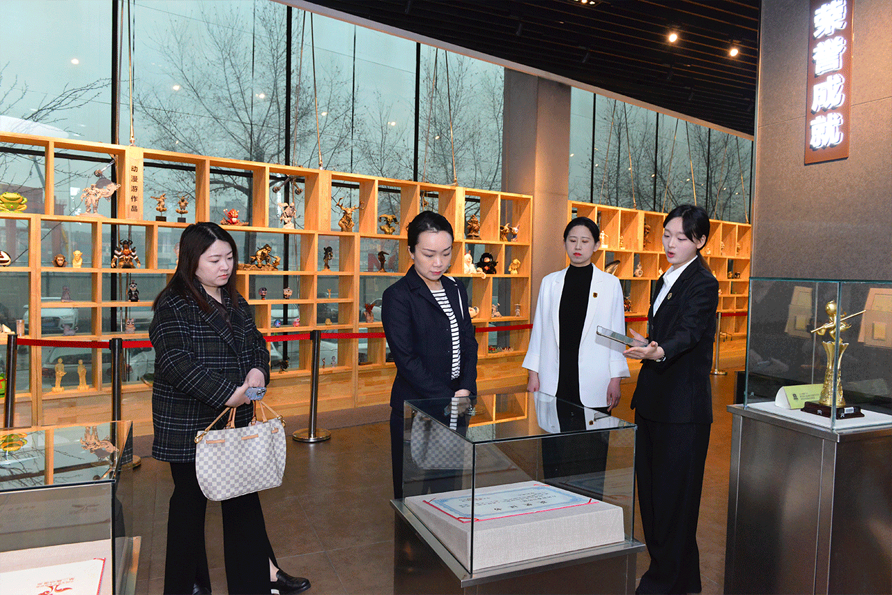 嘉宾们参观了学校校史馆、吉林国际动漫博物馆、学研产一体化创作成果展厅。在参观过程中,嘉宾们对我校建校24年取得的办学成果及国际化办学愿景表示钦佩和认可,被我校原创定格动画《礼物》、原创动画影片《飞天》等艺术作品深深吸引,表示了由衷的赞誉。通过参观,来访嘉宾深入了解了学校的发展历程、办学特色及办学成果等。