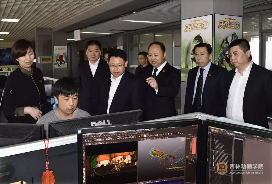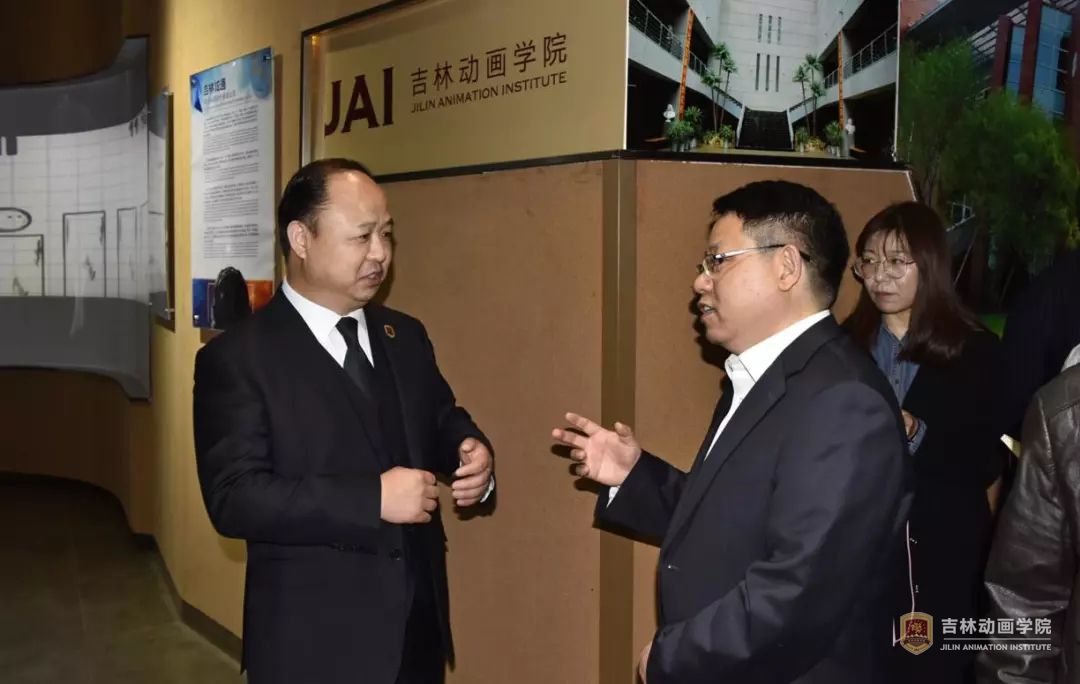 调研组一行先后参观了文化艺术中心、校史馆、张松林纪念馆、天博公司、漫画平台和祖龙平台,深入了解和考察了吉林动画学院的发展历程、专业群和产业群建设及学校动画制作体系。