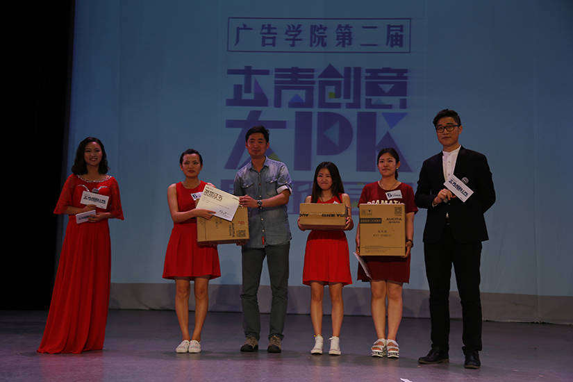 决赛现场,8组选手蓄势待发,精彩提案。2013级“南征北战”队统一穿着显眼的红色队服,他们抽到的命题是凯迪拉克新品发布会策划案。这组选手展示的创意核心概念是“另一个自己”,每个人梦想中总会有一个未来自己的样子,他们的提案就带你触碰未来的自己,以凯迪拉克的新车作为给自己的奖励。最让现场评委、观众震撼的是一组大一的“FN队”,他们抽到的命题是YOU+国际青年社区推广策划案。这组大一的团队充满着激情,他们不会做策略的执行,团队中的小伙伴用了十余天的时间学会了大气的PPT制作,他们奇思妙想,创造出符合年青人口味的“创意者们的出逃计划”策略活动。当评委问到“你们练习了多少次完成了这么精彩的团队提案”时,他们说:“只要有时间,就一起交流修改,应该是第N次了。”这份对专业的执着与热爱感动了评委,感染了现场的同学们,最终这组大一的团队,获本场最佳人气奖,获第二届广告杰青创意大PK一等奖。