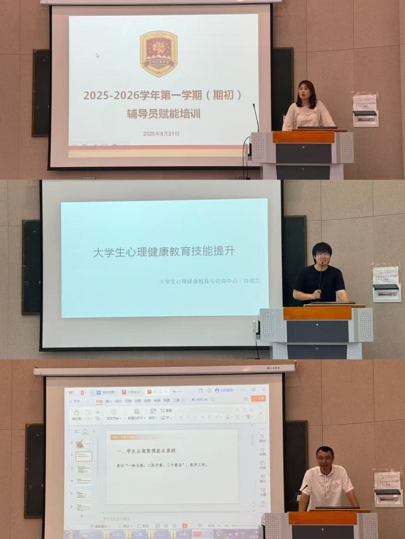 8月22日下午,学生工作部心理中心干事肖健杰在大学生心理健康教育技能提升培训中,结合我校学生常见的心理问题,通过案例分析方式,重点讲解学生心理危机识别和谈心谈话技巧等能力。学生工作部公寓办主管李刚解读了《吉林动画学院学生公寓管理条例》,明确严禁使用违规电器、夜不归宿等安全红线,强调学生公寓管理应以“安全+文化”为重点,全力保障学生安全。