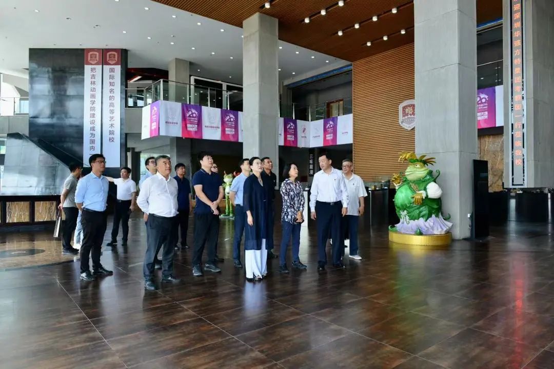6月17日,深圳华强方特文化科技集团执行总裁顿忠杰一行到吉林动画学院参观考察。长春市副市长李炜姝、长春净月高新区党工委书记李健、长春市文旅局副局长袁继业、长春净月高新区管委会副主任吕东等陪同参观考察。学校党委书记、督导专员岳武,校领导蒋平、彭巍等接待来访嘉宾。