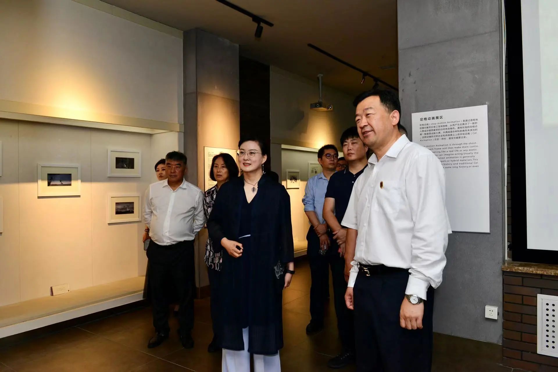 顿忠杰一行参观了学校校史馆、吉林国际动漫博物馆、学研产一体化展厅。承载着浓厚文化底蕴的校史馆、收藏着众多文创行业大家作品的国际动漫博物馆使各位嘉宾了解学校23年的发展历程和动漫的发展历史。在学研产一体化展厅,讲解员向嘉宾们展示了充满创新与活力的动漫作品、深化“联合创业 融合发展”联动效应的创意产业、艺术与科技交叉融合的实践成果,使各位嘉宾充分感受到了吉林动画学院在办学特色方面所取得的成就。