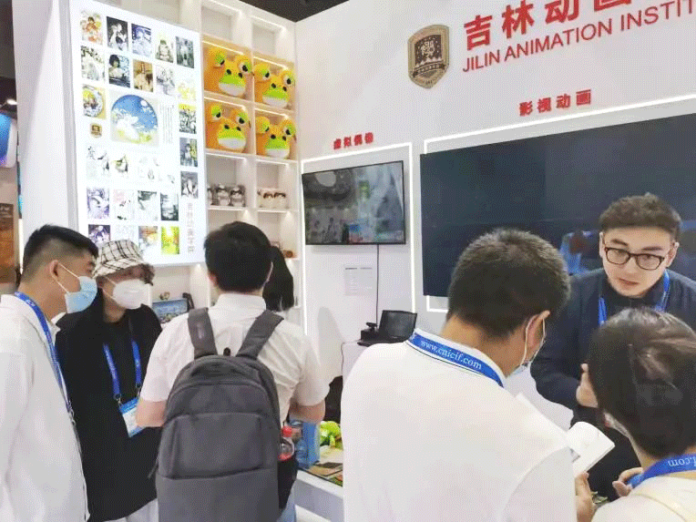 吉林动画学院展区吸引了各类观展人员和专业人士驻足观看。一些相关领域公司对学校创意能力、内容制作能力产生浓厚的兴趣,表达要与学校在教学、科研及文化产业方面进行合作的意向。