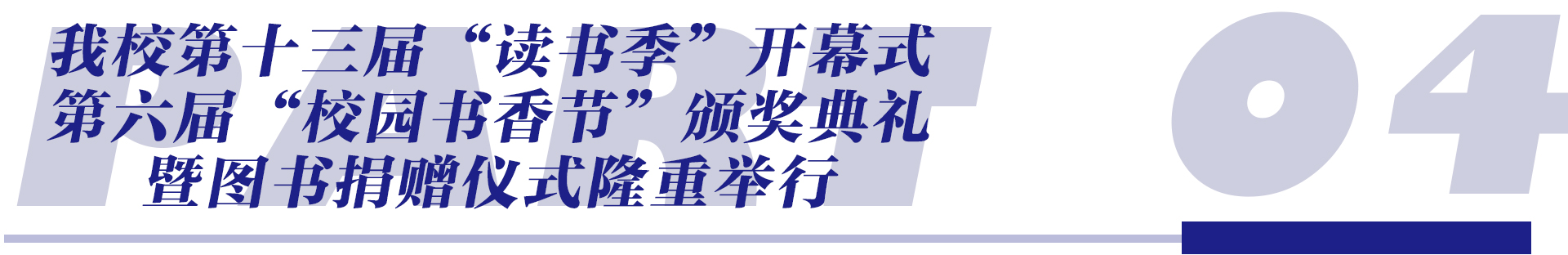 4月21日,我校第十三届“读书季”开幕式暨第六届“校园书香节”颁奖典礼及图书捐赠仪式在图书馆隆重举行。学校党委书记、督导专员岳武出席并讲话。国家督学、吉林省原总督学王青逯,杨忠白教授,学校副董事长刘欣,党委副书记、副校长张砚为等出席活动。▶▶▶▶新闻详情
