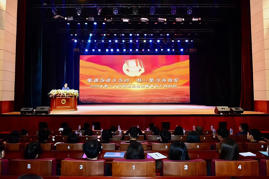 4月14日,吉林动画学院第二十四期团校培训开班仪式在文化艺术中心举行。学校党委书记、督导专员岳武讲话。大会在庄严的国歌中拉开帷幕。本次培训旨在深入贯彻党的二十大精神,进一步提高团干部的政治理论和工作本领。校学生会轮值主席王春燕宣读《吉林动画学院2023年第二十四期团校培训暨青马工程培训方案》。