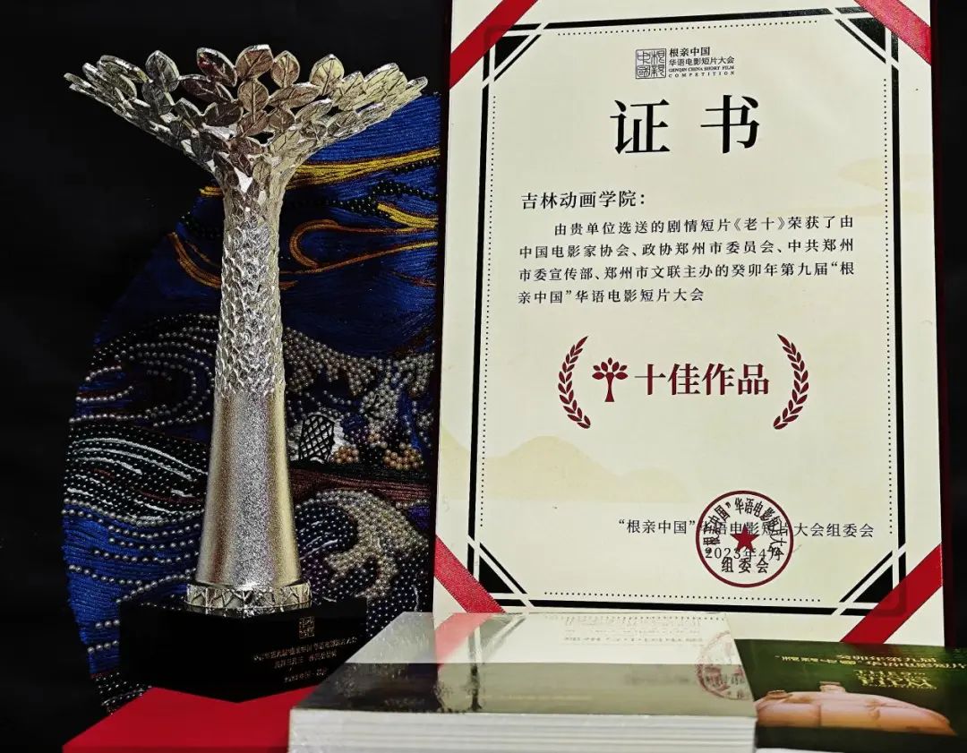 近日,第九届“根亲中国”华语电影短片大会荣誉盛典在郑州举行。吉林动画学院师生共同拍摄的电影剧情短片《老十》在全国范围内选送的683部短片作品中脱颖而出,荣获“十佳作品”殊荣。
