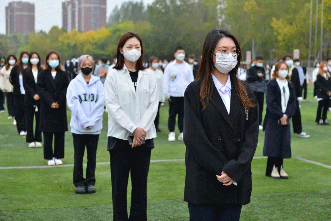 吉林动画学院国旗班的同学们迈着铿锵有力的步伐护送国旗来到升旗台。在雄壮激昂的《义勇军进行曲》音乐响起时,学校董事长、校长郑立国,党委书记、督导专员岳武以及其他领导班子成员和教师代表、学生代表500多人怀着崇敬之情,高唱《国歌》,共同祝愿伟大祖国更加繁荣昌盛。
