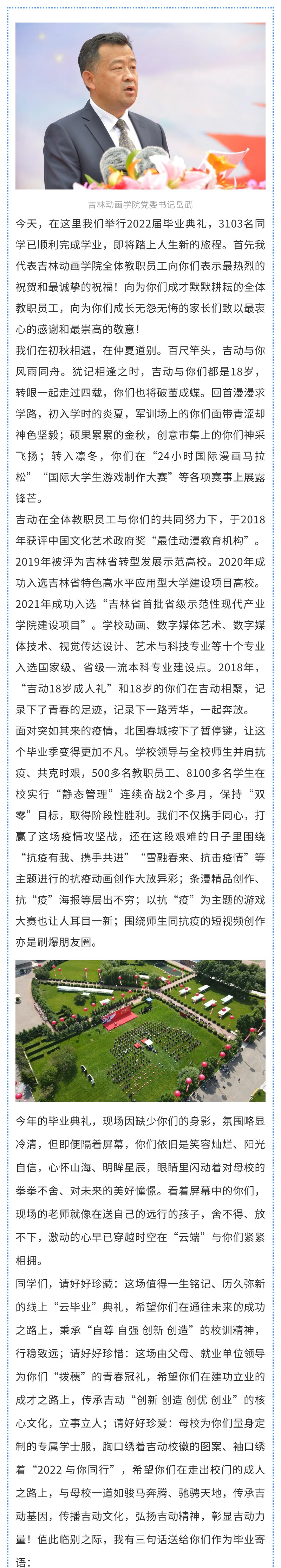 【JAI·新】担当时代重任 绽放青春力量 ----吉林动画学院党委书记岳武在2022届毕业典礼致辞