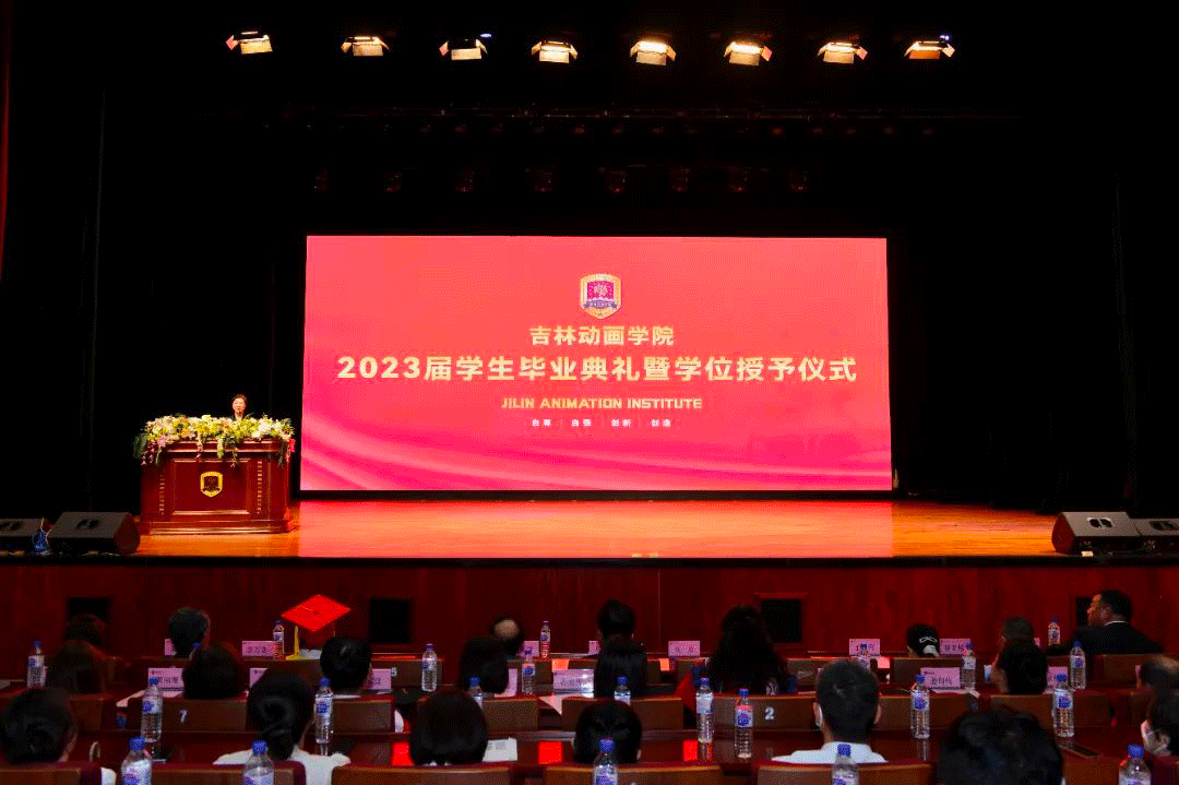 毕业典礼上,王春利宣读《吉林动画学院关于准予2023届庞行早等3112名学生毕业的决定》和《吉林动画学院关于授予2023届3107名毕业生学士学位的决定》;岳武宣读《吉林动画学院关于表彰王靖雯等154名学生2023届优秀毕业生的决定》;许小多宣读《吉林动画学院关于收藏2023届优秀实物毕业作品的决定》;刘欣宣读《吉林动画学院关于表彰2023届毕业生平台力行先进个人的决定》。