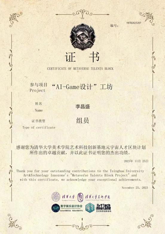 2022-2023年度,在第三届游艺杯AI游戏场景角色概念赛中荣获省级一等、二等、三等奖;在第三届清华艺科工坊活动中获得了第三名和第七名的佳绩;在全国高校数字艺术设计大赛获省级奖项。